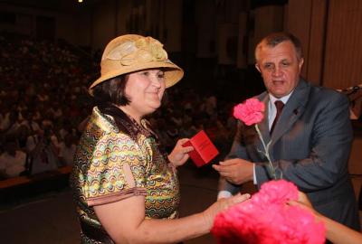 После небольшого концерта первый секретарь Крымского республиканского отделения КПРФ, Секретарь ЦК КПРФ, заместитель Председателя фракции КПРФ в Государственной думе Российской Федерации Коломейцев Николай Васильевич и второй секретарь Крымского республиканского отделения КПРФ Соломахин Олег Андреевич наградили Почетным знаком «Ветеран партии» самых опытных и достойных представителей партии.