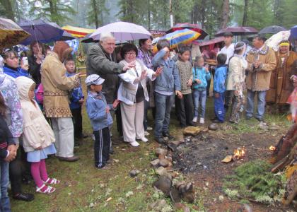 И хотя лидера якутских коммунистов Виктора Губарева не было на сцене для почетных гостей, к нему неоднократно подходили люди: поздравляли с праздником, интересовались ходом предвыборной борьбы и, конечно же, желали успехов. Вот он говорит с аксакалом эвенков Иваном Атласовым, который рассказал, что он вернулся из Хабаровского края, с Охотского моря, где эвены Аяно-Майского района хотели бы войти в состав Якутии, бывшей когда-то их исторической родиной. Разумеется, для этого нужен всенародный референдум. «При успехе дела у республики вновь появится выход к морю», – заключил Иван Атласов.