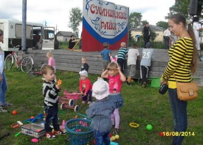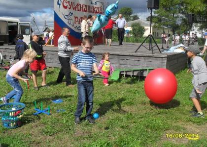 В субботу, 16 августа, в п.Сусанино Костромской области прошёл День посёлка. Днём праздник заключался в концертной программе на сцене в центре посёлка. Кроме того, там же установили передвижную карусель и надувной батут, расположилось несколько торговых столиков.