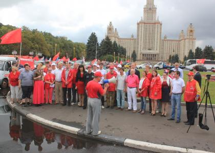 Минувшая неделя ознаменовалась ещё одним ярким событием: КПРФ и патриотический Фронт помощи Донбассу «Красна Москва», провели на улицах столицы автопробег в поддержку Новоросии. Колонна из многих десятков автомобилей с красными знаменами и партийной символикой проехала по центральным магистралям Москвы, начав свой путь с символического старта от памятника «Рабочий и колхозница». Жители Москвы активно приветствовали автоколонну КПРФ, проезжающие мимо автомобили сигналили участникам автопробега в знак солидарности. Краснознаменная автоколонна проехала через центр города до смотровой площадки около МГУ на Воробьёвых Горах.