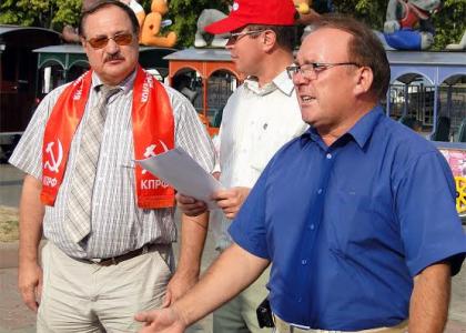 21 августа в рамках Всероссийской акции протеста по инициативе Курского ОК КПРФ состоялся пикет в защиту отечественного товаропроизводителя и жителей Новороссии от олигархов, бандеровцев и неонацистской власти.