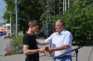 Член Президиума, секретарь ЦК КПРФ, заместитель руководителя фракции КПРФ в Государственной Думе, лидер коммунистов Дона и Крыма Н.В.Коломейцев вручил партийный билет молодому рабочему завода «Ростсельмаш» О.В.Глуховскому.