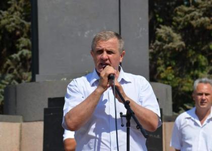 Открыл и вел митинг руководитель фракции коммунистов в Законодательном собрании Ростовской области, секретарь Ростовского обкома КПРФ Е.И.Бессонов.