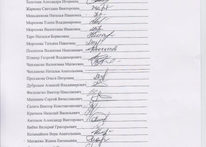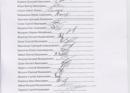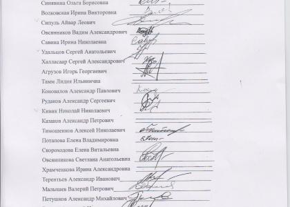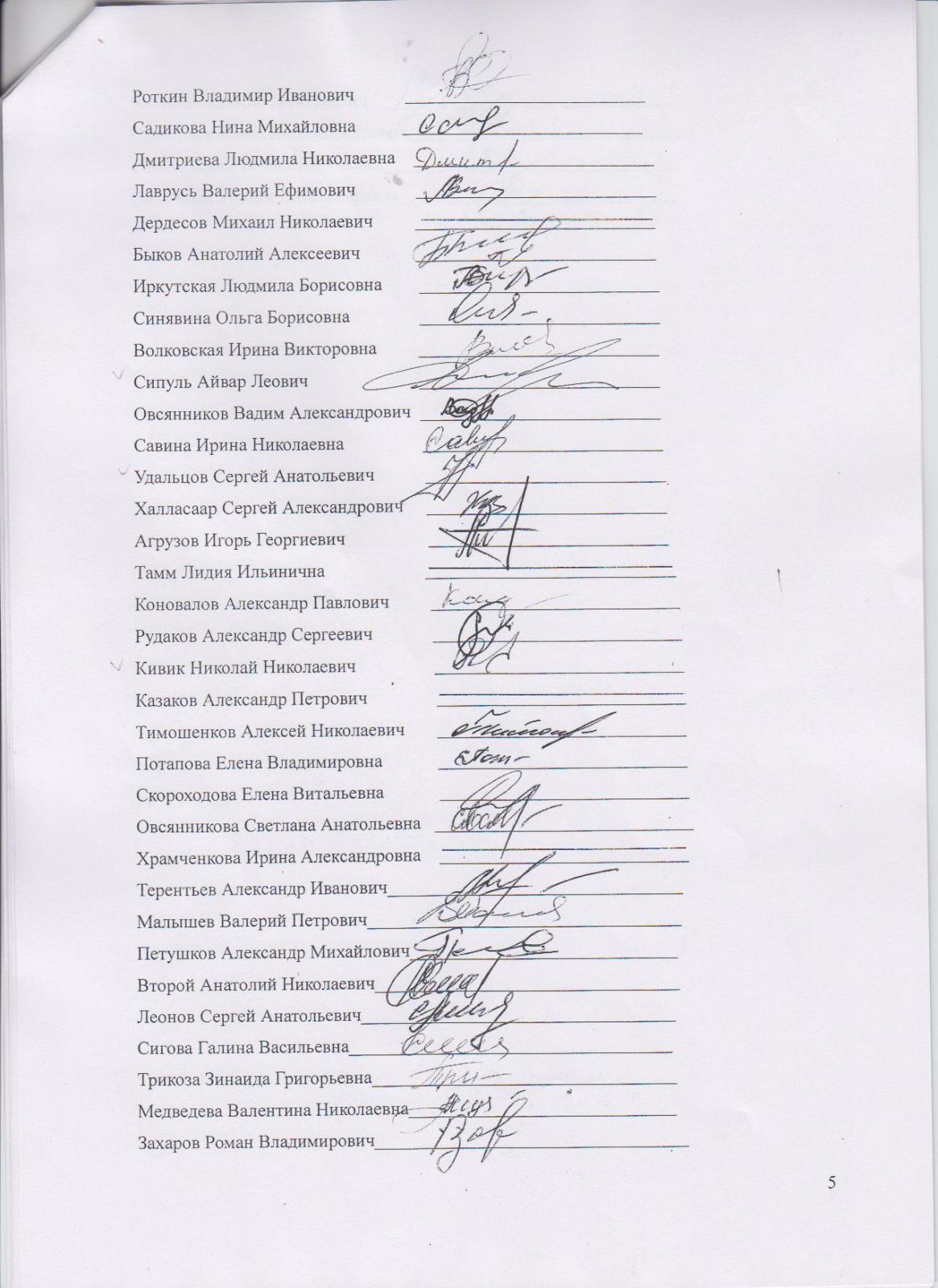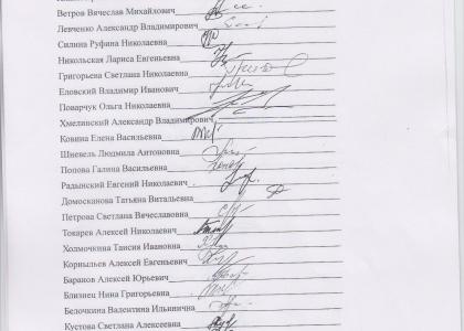Комков Василий Иванович, Ващенко Виктор Николаевич, Келин Сергей Михайлович, Гулкасян Алиса Валерьевна, Кепцова Тамара Васильевна, Орлов Александр Валентинович, Бадриддинов Владислав Владимирович, Бадриддинова Надежда Александровна, Ефимов Владимир Николаевич, Иркутская Антонина Петровна, Халласаар Екатерина Сергеевна…». Всего 143 подписи. Весомый «подарок» политической партии «Единая Россия», считающей себя «правящей».