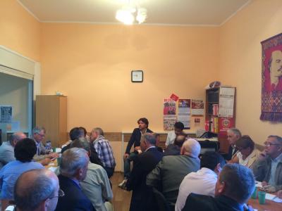 А.А. Ющенко отметил, что несмотря на ранний час встречи (10 утра) встреча прошла при хорошей явке и активности. Депутат Госдумы РФ в своем выступлении кроме поддержки кандидата КПРФ остановился на вопросах внешней политики, рассказал о своих поездках в Крым и Новороссию, о работе весенней сессии в Госдуме РФ. В частности он поведал, о борьбе фракции КПРФ за принятие законов «О выборах», «Об образовании», «Детях войны». Выразил надежду, что осенняя сессия вновь вернется к отвергнутым предложениям коммунистов, и они будут приняты.