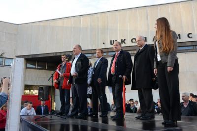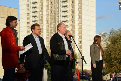 На митинге выступил Председатель ЦК КПРФ Г.А. Зюганов. В присутствии собравшихся он поздравил А.Е. Клычкова с 35-летием, поскольку именно 2 сентября руководитель фракции КПРФ в Мосгордуме отмечает свой юбилей. Также лидер коммунистов поздравил всех участников митинга с началом нового учебного года.