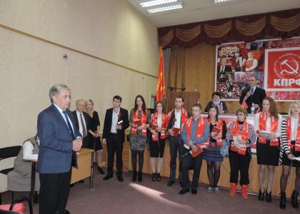 Затем по славной традиции со словами напутствия член президиума ЦК КПРФ В.С.Шурчанов торжественно вручил партийные билеты 25 молодым коммунистам Барды, Березников и Перми.