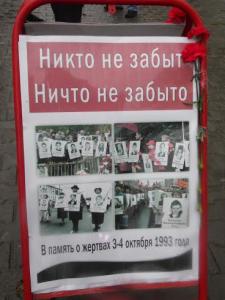 Мы помним о павших товарищах и продолжаем благородное дело, которое они начали. Звучные и емкие лозунги не оставили равнодушными никого из прохожих, которым по окончанию пикета были розданы цветы в память о жертвах штурма Белого дома.