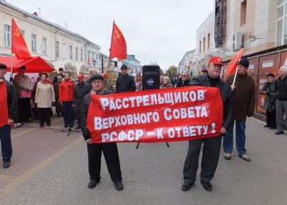 Митинг прошёл под лозунгами: «Не забудем! Не простим!», «Расстрельщиков Верховного Совета РСФСР – к ответу!», «Новороссия, коммунисты с тобой!».