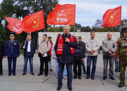 Лидер краевого отделения КПРФ, руководитель фракции коммунистов Законодательного Собрания края Н.И.Осадчий в своей речи подчеркнул, что ранней осенью 1993 года в Москве произошло стихийное народное восстание: народ не выдержал издевательства начавшихся капиталистических реформ и выступил против грабительской приватизации, расхищения государственной собственности, разгрома колхозного строя – в защиту Советской Конституции, против ельцинского государственного переворота. Либерал-фашизм утопил это восстание в крови, как теперь тот же либерал-фашизм устроил переворот на Украине и проливает кровь мирных граждан в Новороссии.