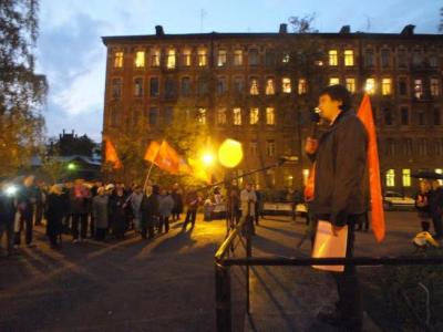 Открыла его первый секретарь СПб горкома КПРФ Ольга Архиповна Ходунова, которая подчеркнула, что сегодня на Украине силами западного империализма и его обслуги — олигархов (в том числе российских) развязана братоубиственная война. Вскормленный олиграхами бандеровский фашизм, появление которого — вина, в том числе, компрадорской российской власти, 23 года самоустраняйшейся от Украины и ее народа, грозит сегодня уже самой России, и Компартия находится на передовой борьбы с фашизмом.