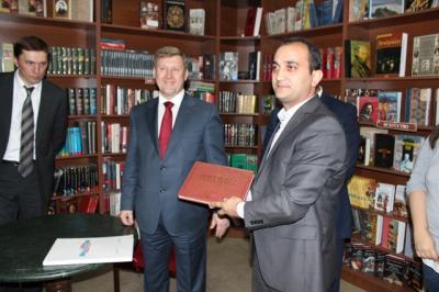 Кроме того, мэр Новосибирска посетил «Дом русской книги». Этот проект реализуется в Республике Армения с 2011 года с целью продвижения русского языка и русской культуры, помимо столицы они открыты в Арташате и Гюмри. При Домах русской книги функционируют центры бесплатного обучения русскому языку. Занятия пользуются большой популярностью среди населения республики, русский язык изучают учащиеся средних школ, студенты, а также уже взрослое поколение. С момента открытия в центрах прошли обучение более 10 тысяч человек. На базе Домов русской книги проводятся различные мероприятия, направленных на укрепление сотрудничества двух стран и продвижения русского языка и культуры, в том числе олимпиады по русскому языку и творческие конкурсы среди учащихся школ.