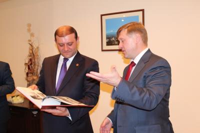 Также в пятницу Анатолий Локоть посетил Посольство Российской Федерации в Республики Армении. На встрече с советником-посланником Посольства РФ в Армении Андреем Ивановым обсуждались вопросы укрепления сотрудничества и особо значимые направления взаимодействия на уровне российских и армянских городов. Посольство России в Республике Армении выразило готовность оказывать всестороннее содействие в развитии двусторонних отношений между Новосибирском и Ереваном в рамках соглашения о побратимстве городов.