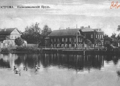 Между тем, как сообщают историки, этому пруду около 400 лет. Вместе со множеством других прудов в центральной части города Костромы (которая, как известно, была деревянной) он всегда был с водой. Назначение этого пруда было крайне важным – пожарный водоём. «Он имел почти круглую форму, его первоначальное название — Камаев, однако с конца XVIII в. он официально именуется Козьмодемьянским, т. к. до 1930-х годов на противоположной стороне улицы стояла церковь Козьмы и Демьяна в Кузнецах (она же Казанской Богоматери), храм воздвигнут на месте древнего деревянного в 1729 г., а колокольня — в 1812 г. По зимам на нем был первый и лучший в городе каток. Камаев пруд — едва ли не единственный уцелевший из некогда многочисленных водоемов подобного рода в старой Костроме. С конца 19-го века на нем заливался первый в городе каток, особенно любимый тогдашней учащейся молодежью. Еще раньше Камаев пруд окружали кузницы (он находился на территории Кузнечной слободы), из которых самая большая — общественная кузница продолжала действовать до 1820-х годов».