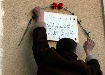 Следующая остановка комсомольцев была на улице Краснодонской, названной в честь героев «Молодой Гвардии». Здесь были возложены цветы у памятной доски, и каждый из присутствующих отдал дань уважения комсомольцам - юным подпольщикам Краснодона, которые отдали свои жизни в борьбе с гитлеровскими оккупантами.
