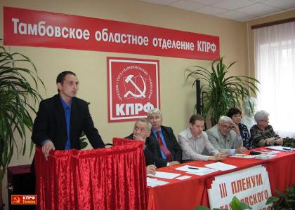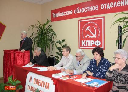 1 ноября 2014 года под председательством первого секретаря А.И. Жидкова состоялся III Пленум Тамбовского обкома КПРФ, который рассмотрел следующие вопросы:1. О задачах Тамбовского областного отделения КПРФ по усилению влияния в пролетарской среде в свете решений VI (октябрьского) Пленума ЦК КПРФ.2. Организационные вопросы.