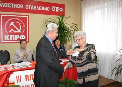 Перед рассмотрением повестки дня Андрей Игоревич от имени Президиума ЦК вручил ряду товарищей медали ЦК КПРФ «Дети войны» и «200 лет М.Ю. Лермонтову», а так же грамоты обкома партии.