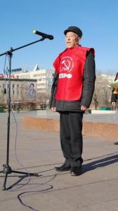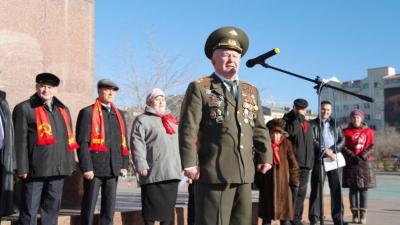 Открыл митинг первый секретарь Забайкальского крайкома КПРФ Юрий Гайдук. Он поздравил присутствующих с праздником, напомнил о значимости Великой Октябрьской социалистической революции, ее достижениях, которые так кощунственно сегодня рушатся современной властью. От организации «Дети войны» перед собравшимися выступил председатель краевого отделения Иван Леонтьев, который, вспоминая завоевания Октября, тяжелые годы войны для каждого человека и особенно детей, еще раз напомнил о необходимости скорейшего принятия закона о социальных гарантиях «детям войны». Депутат Законодательного собрания края Николай Мерзликин в выступлении подчеркнул узурпаторский характер работы сегодняшнего руководства страны и края, подтверждая свои слова вносимыми на обсуждение депутатов поправками в бюджет региона, смысл которых сводится к урезанию или прекращению многих выплат малообеспеченным слоям населения. Учительница сельской школы, депутат местного Совета Шкудюк с болью в сердце рассказала о разрушении системы образования, а также нищенском существовании сельского населения. Выступления остальных участников митинга сводились к одному: завоевания Октября – величайшие достижения ХХ столетия, которые необходимо сохранить. И сила народа – в единстве, которое сегодня нужно и в борьбе против фашизма.