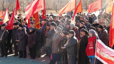 Праздничные митинги также прошли и в районах края. Около 80 человек собрались на площади Борцам революции в г.Нерчинске, более 120 человек – на центральной площади п.Кокуй. Около 50 человек собрал митинг в п.Карымское, столько же улетовцев пришли на площадь села, чтобы еще раз вспомнить Великий Октябрь. В п.Дарасун с участием депутата Законодательного собрания Сергея Белоногова и секретарей краевого комитета КПРФ Юрия Гайдука и Максима Шишкина также состоялся праздничный митинг, собравший около 100 человек. В Краснокаменске местное отделение «Детей войны» в городской библиотеке провело встречу, посвященную 97-й годовщине Великой Октябрьской социалистической революции. Торжественные собрания прошли в п.Агинское и с.Красный Чикой, где местные коммунисты 7 ноября возложили цветы к памятнику В.И. Ленину. Чернышевское местное отделение КПРФ в этот праздничный день организовало концерт в районном Совете ветеранов. А п.Могойтуй в этот день расцвел красными флагами, которые вывесили на свои дома местные коммунисты.