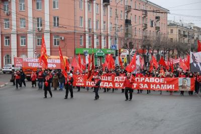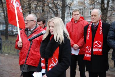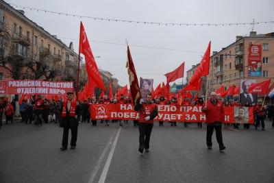 В честь 97 годовщины Великого Октября в г. Рязани и большинстве райцентров области прошли массово-политические мероприятия, организованные областным и местными отделениями КПРФ.
