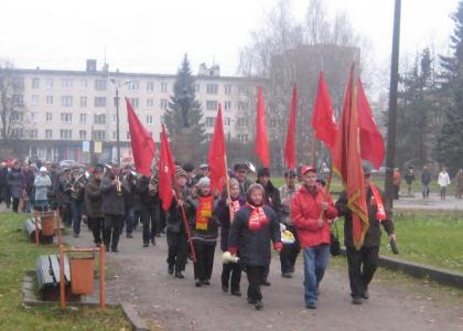 В городе Всеволожск на праздничном митинге было привычно многолюдно. Звучали песни советской поры, такие близкие сердцу каждого человека, который не отрекается от своего прошлого в угоду политической конъюнктуре. С поздравлениями выступали и ветераны, и молодые коммунисты. И все выступающие говорили о необходимости возвращения социалистических ценностей, когда человек человеку будет друг, товарищ и брат.