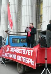 Лозунги митинга: «Слава Великому Октябрю!», «Выход из кризиса – социализм!», «Правительство в отставку!», «Коммунистов во власть!», «Красные придут — цены упадут!», «Программу КПРФ в жизнь!», «Непомерная квартплата — за молчание расплата».