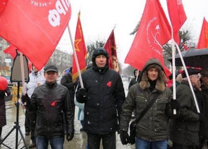 Перед участниками Октябрьского митинга в г. Мариинский Посад выступил первый секретарь Чувашского республиканского комитета КПРФ, член Президиума ЦК КПРФ, депутат Государственной Думы Российской Федерации В. С. Шурчанов.