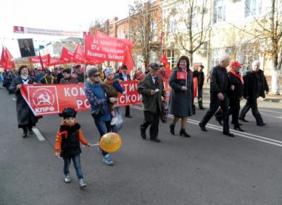 Зазвучали звуки духового оркестра, и колонна двинулась по главной улице республиканского центра - Краснооктябрьской. По пути к колоне присоединялись всё новые и новые горожане. На улице Пионерской колонна сделала левый поворот и под марши оркестра прошагала до площади Дружбы народов. Здесь и состоялся митинг, посвящённый 97-й годовщине Великого Октября. Открыла митинг, под звуки гимна Советского Союза, первый секретарь Майкопского городского комитета КПРФ Е.А.Москаленко. Она предоставила слово первому секретарю Адыгейского рескома КПРФ, члену ЦК партии Е.И. Салову, который отметил величие Октябрьской социалистической революции, её историческую роль в освобождении народов от колониального рабства на планете, социальном отстаивании простых людей, объединении пролетариата всех стран.