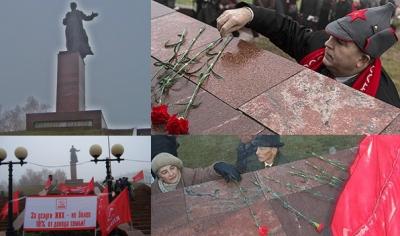 После митинга группа его участников проехала до площади Свободы, где были возложены цветы к памятнику вождя Великого Октября и основателя советского государства В.И. Ленина.