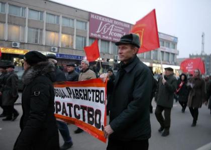 В демонстрации по главным улицам Липецка приняли участие несколько сотен коммунистов и сторонников партии. По звуки духового оркестра и советских песен колоны, украшенные красными знамёнами, лозунгами и портретами вождей революции, прошли по городу, встречая приветственные сигналы владельцев автомобилей и одобрение прохожих.