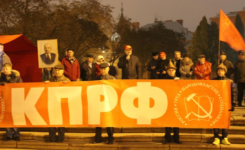 Над митингующими развевались красные флаги и лозунги: «Великому Октябрю – Слава!», «Власть и собственность – народу!», «Нет росту цен и тарифов!», «Программу КПРФ – в жизнь!», «Детям войны достойную жизнь», «Вперед – к социализму!» и другие.