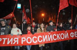 Тем не менее, колонны КПРФ, Ленинского комсомола, Союза Советских офицеров, Всероссийского женского союза «Надежда России», движения «Дети войны», Коммунистической партии Финляндии, ВСД «Русский лад», коллектива завода «Реактив», борющегося против закрытия предприятия, и других общественных организаций города прошли по улице Академика Лебедева, Боткинской улице, Финляндскому проспекту через Сампсониевский мост до Петроградской набережной к месту вечной стоянки легендарного крейсера «Аврора», где и состоялся митинг коммунистов.