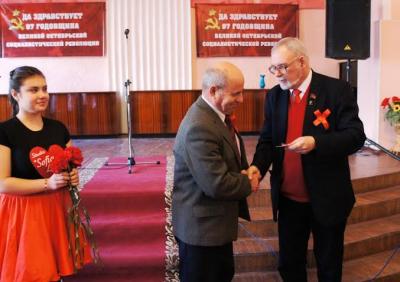 Торжественной заседание начал с песни «Октябрь!» певец Олег Шабатовский. С докладом: «Сохраним верность идеям Октября!» выступил секретарь обкома КПРФ по идеологии Л.М.Затеев. Поздравление с праздником Октября от имени председателя ЦК КПРФ Г.А.Зюганова зачитал собравшимся член ЦК, первый секретарь обкома КПРФ В.А.Кислицын, который затем вручил детям войны памятные медали. Среди награжденных - активисты КПРФ и сторонники партии Ф. Ф.Немков, М.Т.Стародубцева, Л.М.Назарова, В.А.Соколов и другие.