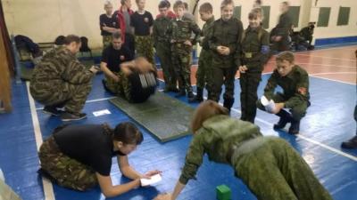 В спортивном зале школы собрались 10 команд из военно-спортивных клубов, школ города Перми и школы г.Очер.
