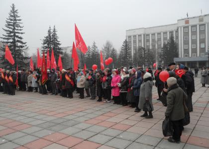 Открыл митинг первый секретарь Абаканского горкома КПРФ Валентин Коновалов. Историческую оценку Ооктября и современности дал первый секретарь Хакасского РО КПРФ Николай Бозыков. Он отметил, что кремлевское правительство с сырьевым курсом страны подвело Россию к экономическому краху. На фоне обвала цен на нефть, курса рубля нельзя допустить, чтобы все экономические трудности 2015-го года легли на плечи рядовых граждан. Экономические потери надо перенести на миллиардеров и миллионеров. Все выступающие возмущены положением молодежи, пенсионеров, тружеников в России и озабочены ухудшением их экономического состояния, потерей социальных завоеваний Октября.