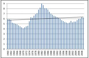 1960-2009 гг. (в центах, в сопоставимых ценах)