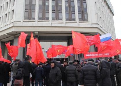 25 ноября перед зданием Государственного совета Республики Крым состоялся митинг-концерт в поддержку Новороссии, организованный Русской общиной Крыма с участием коммунистов Симферопольского городского отделения КПРФ.