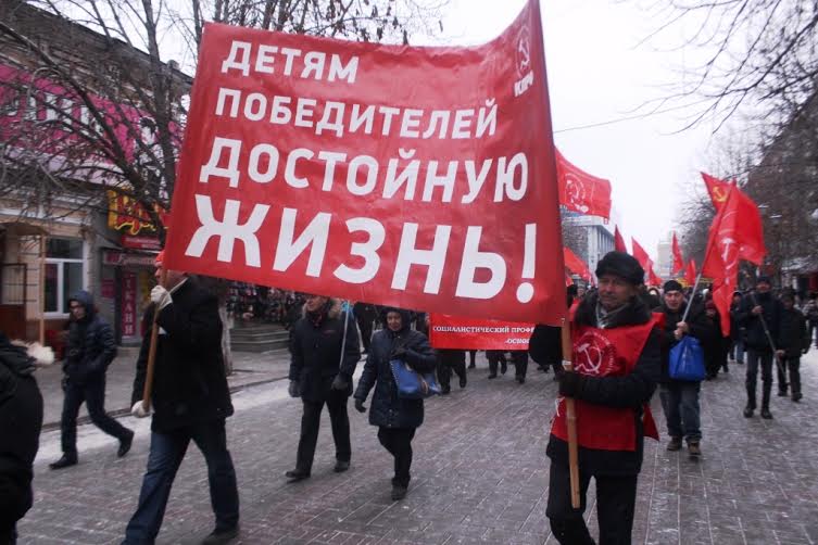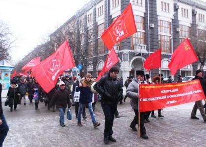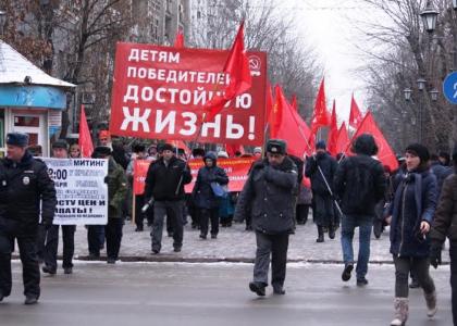 В центре города на площади им. С.М. Кирова, что у Крытого рынка, собрались неравнодушные горожане и активисты Компартии. Плакаты манифестантов отражали уровень народного недовольства политикой властей: "Власть и собственность – народу!", "Наш курс – труд, народовластие, социализм!", "Достойную жизнь человеку труда!", "Требуем принять закон о детях войны!" и др.