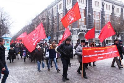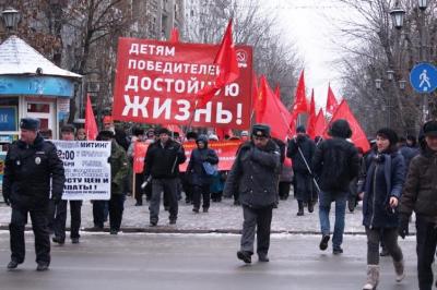 В центре города на площади им. С.М. Кирова, что у Крытого рынка, собрались неравнодушные горожане и активисты Компартии. Плакаты манифестантов отражали уровень народного недовольства политикой властей: "Власть и собственность – народу!", "Наш курс – труд, народовластие, социализм!", "Достойную жизнь человеку труда!", "Требуем принять закон о детях войны!" и др.