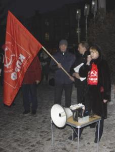 Вёл митинг председатель фракции КПРФ в Муниципалитете города Ярославля В.И.Байло. Выступали: депутаты Ярославской областной Думы от КПРФ Е.Д.Кузнецова и А.П.Лейкин, депутат Муниципалитета города Ярославля от КПРФ А.А.Голицын, Первый секретарь Рыбинского городского комитета КПРФ М.К.Парамонов, депутат Муниципального совета Кузнечихинского сельского поселения ЯМР Н.Ю.Бобрякова, члены Ярославского областного комитета КПРФ А.В.Кашников, Н.В.Мишуров, А.С.Филиппов.