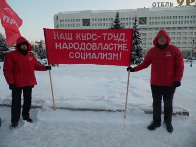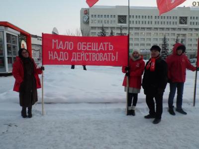 Несмотря на морозную погоду, в пикете приняли участие коммунисты многих районов города, ветераны, представители общественных организаций, жители города. Митингующие развернули флаги КПРФ, знамёна Победы и транспаранты с главными требованиями, выдвигаемыми на публичной акции - «Мало обещать, надо действовать!». Молодые коммунисты раздавали информационный бюллетень – листовку, общались с проходящими мимо жителями города, напоминая о чрезвычайно высоком уровне бедности в нашей стране, а так же способах борьбы с ней.