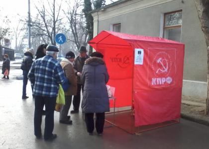 Ежедневно на центральном рынке города выставляется агитпост КПРФ, куда белогорцы приносят вещи, продукты, деньги, обувь.