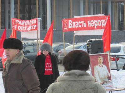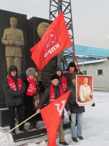 «Окрашенные красным» песни, визитки городского отделения с портретом Сталина, спецвыпуск «Правды», листовки на злобу дня, наши флаги, легкий морозец и солнечный денёк стали атрибутами знаменательной для нас годовщины – 135-летия со дня рождения Иосифа Виссарионовича Сталина. Коммунисты городского отделения всегда трепетно относились к памяти этого человека: портреты вождя, цитаты из его работ всегда становились частью наших публичных акций, а фолианты из полного собрания его сочинений ходят по рукам членов городского отделения не в одном экземпляре.