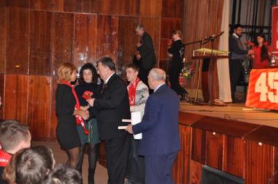 После избрания рабочих органов, заместитель Председателя ЦК КПРФ Владимир Кашин, по сложившейся традиции, вручил партийные билеты вновь вступившим молодым товарищам.