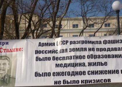 21 декабря 2014 г. в 135-летнюю годовщину со Дня рождения И.В. Сталина на привокзальной площади г. Владивостока у памятника Вождю революции В.И. Ленину собрались активисты многих патриотических организаций левоцентристского толка: Приморское краевое отделение КПРФ, ВКП (б), ПКО ВСД «Русский Лад», ПРО ВЖС «Надежда России», Приморская Ассоциация «В защиту В.И. Ленина» и представители других общественных организаций. В портрету И.В. Сталина были возложены цветы.