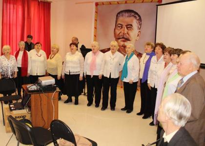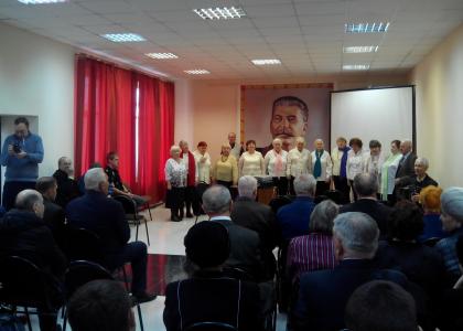 Хор исполнил песни, характеризующие сталинский период, революционные песни и песни Великой Отечественной войны. С подробным докладом о становлении Сталина, как вождя, роли его личности в истории России выступил секретарь первичного отделения «Пушканое» , ветеран партии В.М. Кравцов. Он подробно остановился на исторических деталях, мифах и разоблачениях связанных с революцией, послереволюционным периодам, созданием и развитием Советской Социалистической республики, затронул проблемы фашизма и сионизма, как инструментов глобализации.
