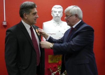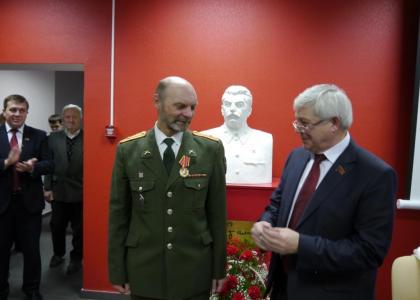 Сразу же после открытия бюста И.В. Сталину первый секретарь Липецкого ОК КПРФ Н.В. Разворотнев здесь же вручил памятные медали ЦК КПРФ всем, кто был причастен к этому событию.