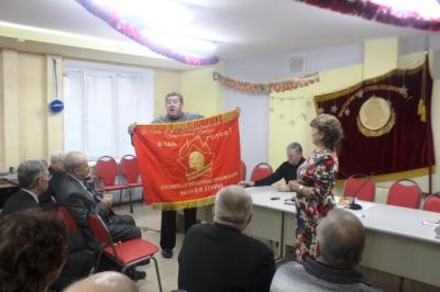 Первый секретарь Саратовского РК КПРФ А.В. Рыжов вручил пионерское знамя музею обкома КПРФ.