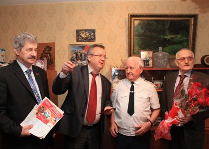 Юбиляра тепло поздравили секретарь Псковского обкома КПРФ, председатель Псковской областной организации Общероссийского профсоюза военнослужащих Виктор Дуля, первый секретарь Псковского городского комитета КПРФ Пётр Алексеенко.