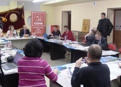 15 января в Саратовском обкоме КПРФ состоялась пресс-конференция депутатов-коммунистов Государственной Думы РФ: заместителя Председателя ЦК КПРФ, первого секретаря Московского городского комитета КПРФ Валерия Федоровича Рашкина, первого секретаря Саратовского обкома КПРФ Ольги Николаевны Алимовой и первого секретаря Саратовского горкома КПРФ Александра Юрьевича Анидалова.